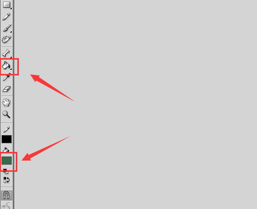 6、再在工具箱內找到顏料桶工具,并設置顏色為綠色,如圖所示: