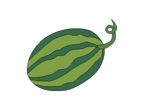 7、使用顏料桶為西瓜不同的部位分別填充上顏色,這樣我們的西瓜就畫好了如圖所示:
