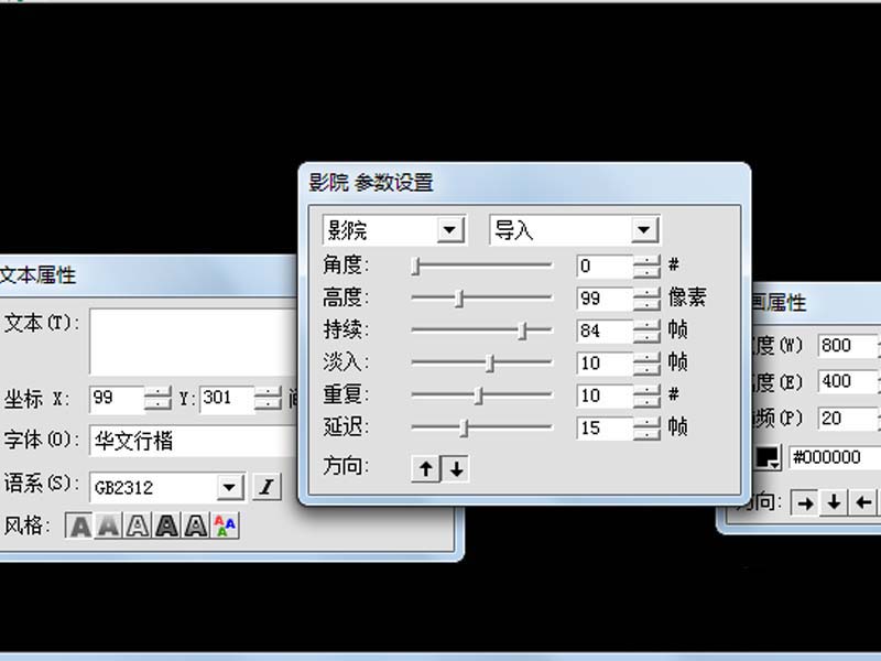 1、啟動flash小軟件后,在動畫屬性對話框中設置大小為800*400,背景顏色為黑色。