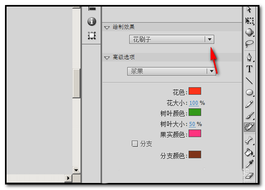 3、在工具欄這里選取Deco工具,即展開了該工具的屬性面板,點開:繪制選項,