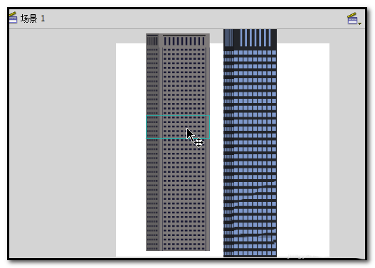 6、然后,在舞臺刷出建筑物。鼠標點住舞臺底部往上拉,可以拉出一棟建筑物。