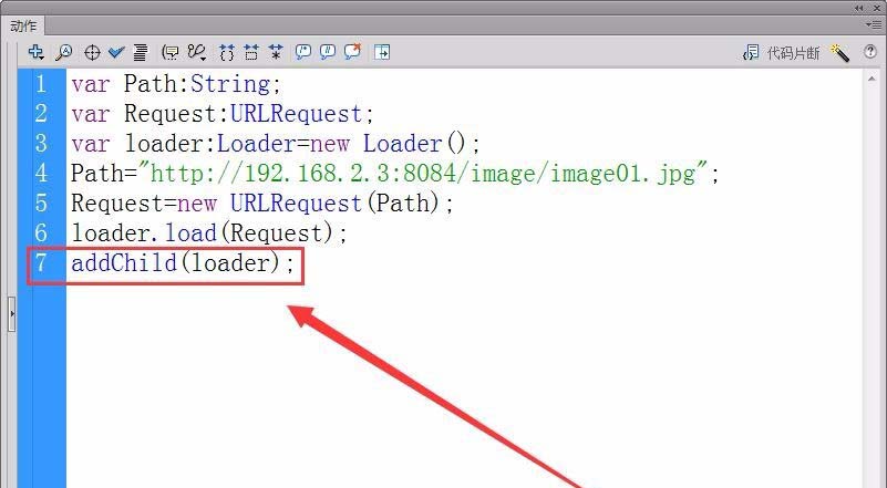 10、最后,將實例loader添加到顯示列表中,使圖片能在舞臺正常顯示。
