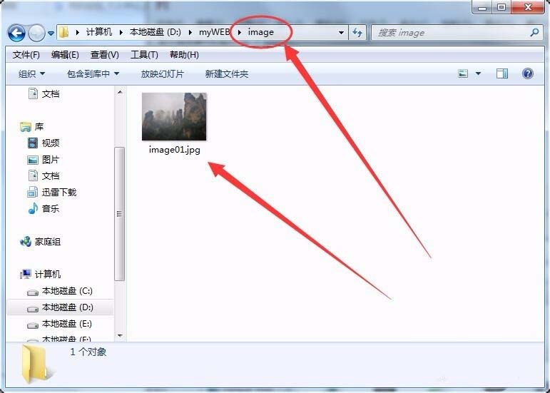 2、在服務器站點中,新建一個文件夾image,在里面保存一張圖片image01.jpg。
