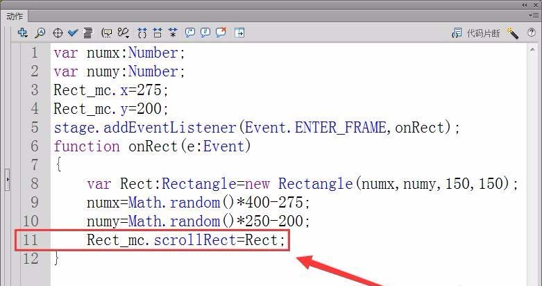 10、最后,設(shè)置滾動(dòng)矩形區(qū)域,即顯示的區(qū)域,用scrollRect函數(shù)實(shí)現(xiàn)圖像的顯示。