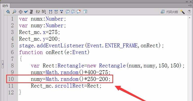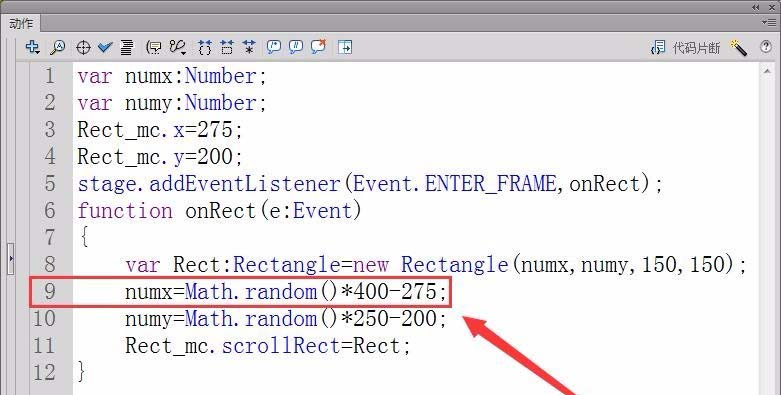 8、用隨機(jī)函數(shù)Math.random產(chǎn)生顯示區(qū)域左上方的X軸坐標(biāo),坐標(biāo)范圍為-275至125。
