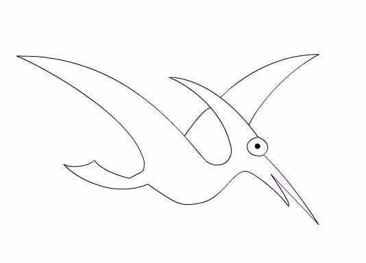 5、在繪制好的頭部上在畫出翼龍的兩只翅膀,如圖所示: