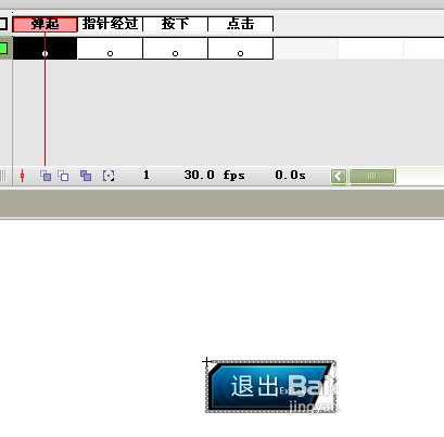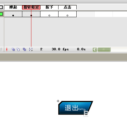 6、單擊第二幀,講“退出2態”這張圖拖放到舞臺,完成鼠標經過態的制作。
