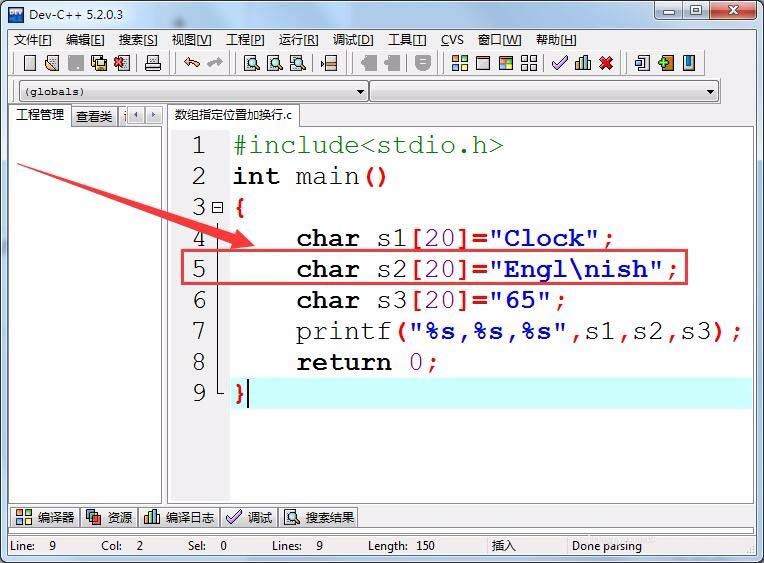 2、運行程序,可以看到在第二個數(shù)組的指定位置,添加了換行。