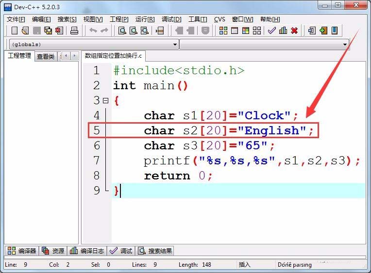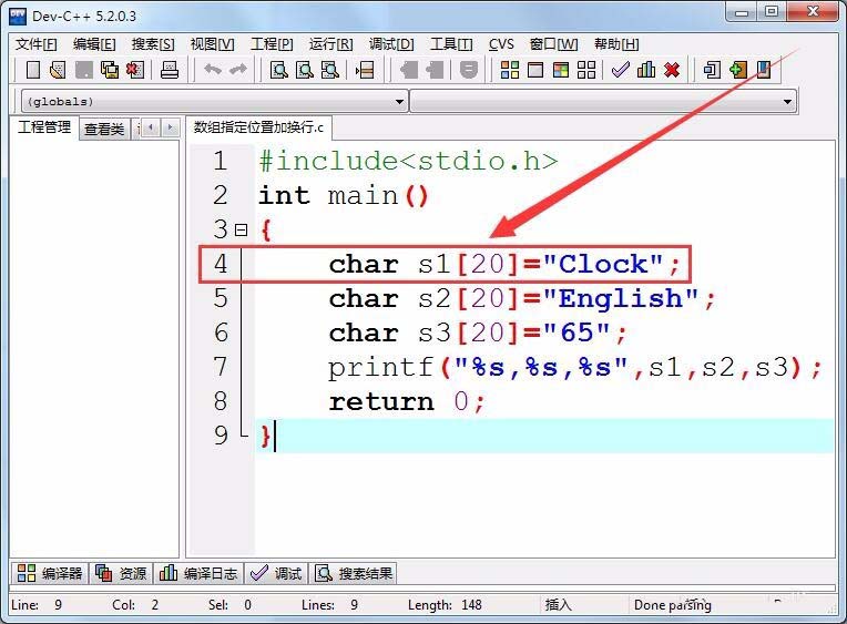5、然后,定義一個字符串數(shù)組s1,給它一個英文人名。