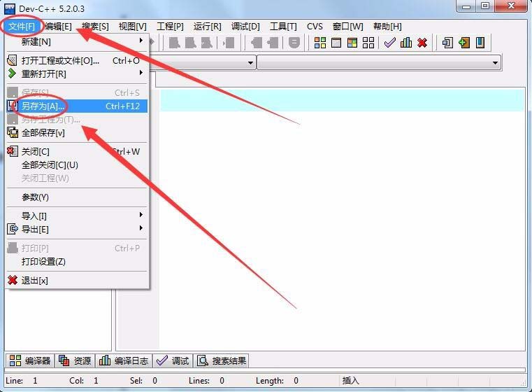 2、單擊“文件”---->“另存為”,在保存文件對話框中將文件類型設(shè)置為“.c”,單擊保存。