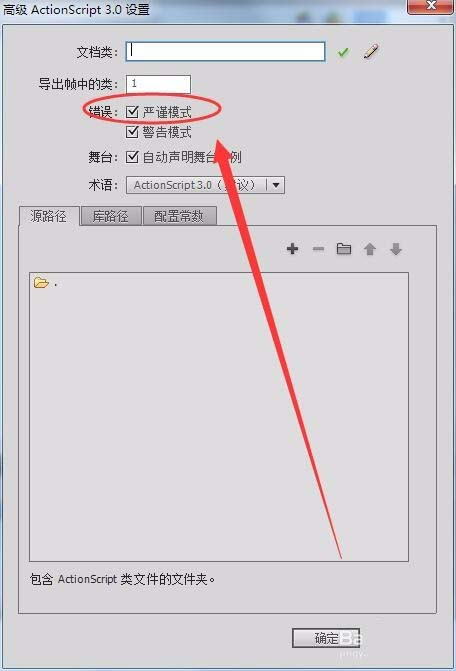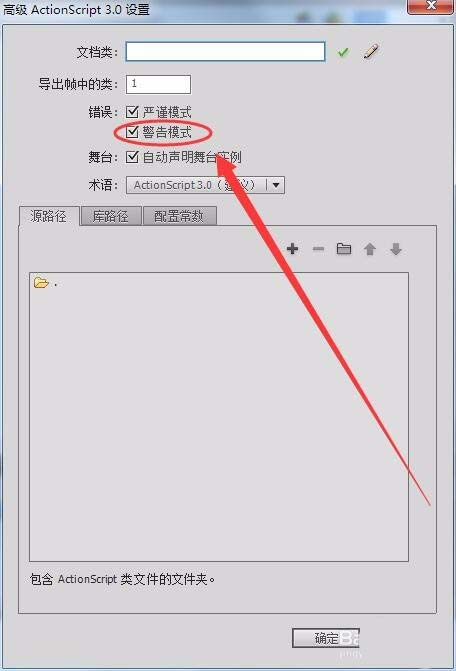 方法一:單擊“文件”---->“ActionScript設置”,打開“高級ActionScript3.0設置”窗口。