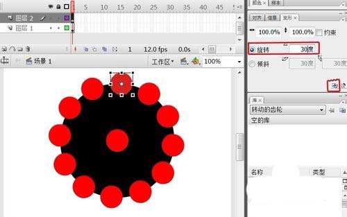 8、選中剛復制的紅圓,在“變形”面板里,選擇“旋轉”30度,連續點擊“復制并應有變形”圖標11下。
