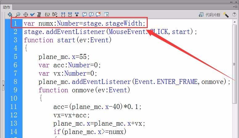3、首先,定義一個實型變量numx,保存舞臺的寬度。