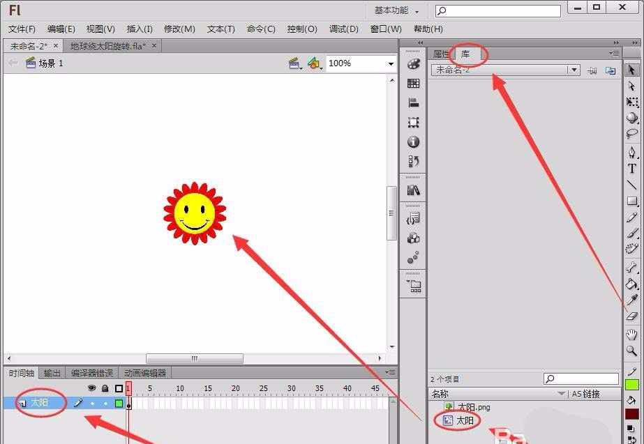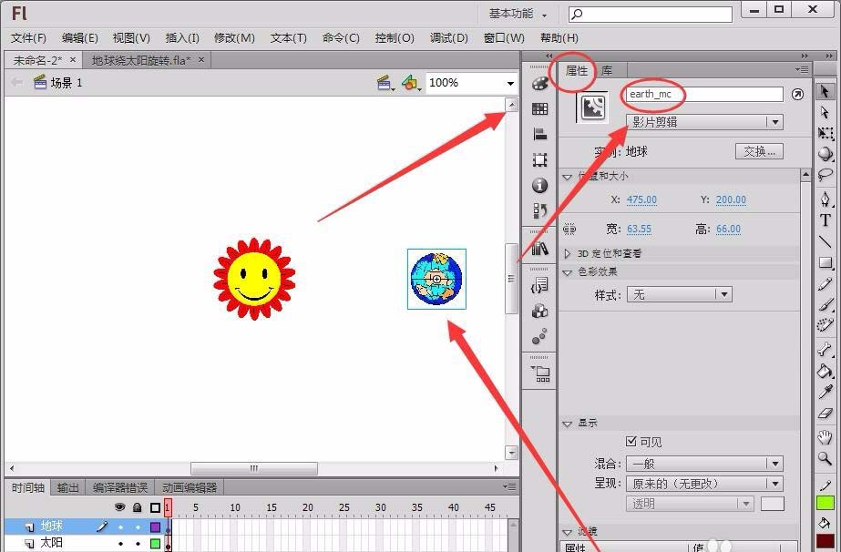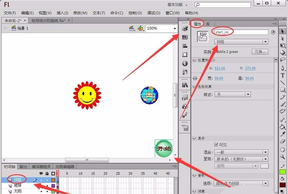 我們想要制作一個地球圍繞太陽旋轉(zhuǎn)的動畫,只要點擊舞臺中的開始按鈕就可以了,該怎么實現(xiàn)這個功能呢?下面我們就來看看詳細的教程。