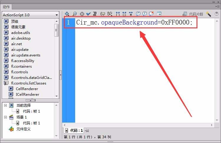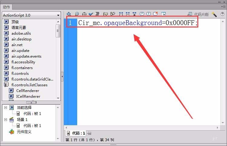 6、可以用opaqueBackground屬性設置背景矩形的顏色,先把顏色設置成紅色,代碼如下圖所示。