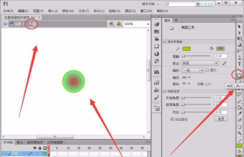 Flash橢圓形怎么填充漸變色?