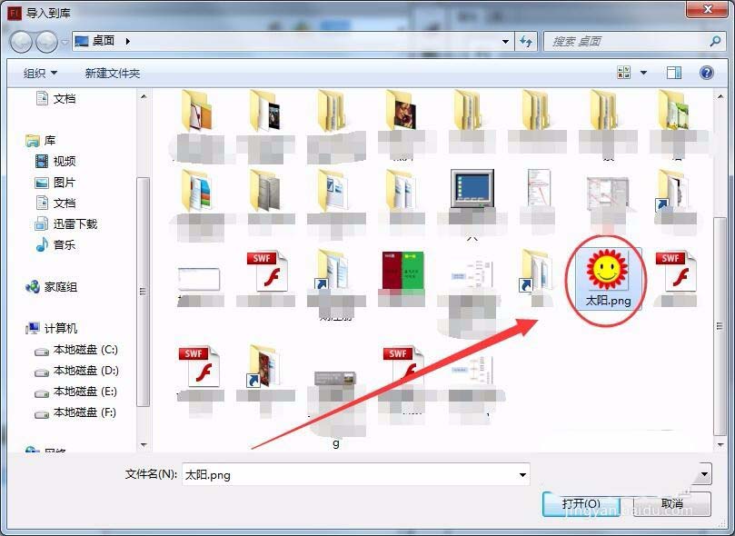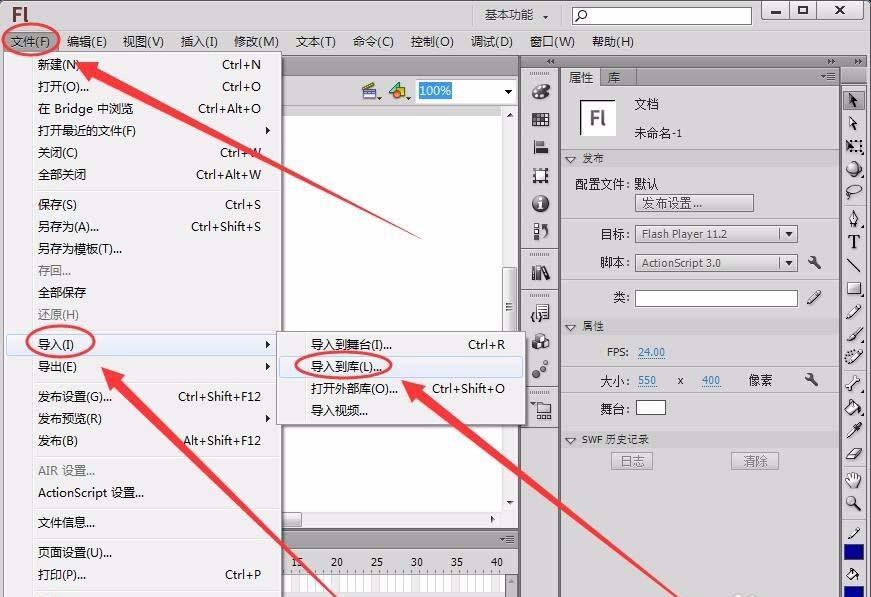 2、單擊“文件”---->“導入”---->“導入到庫”,選擇一張圖片導入到庫中。