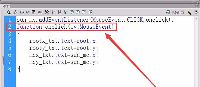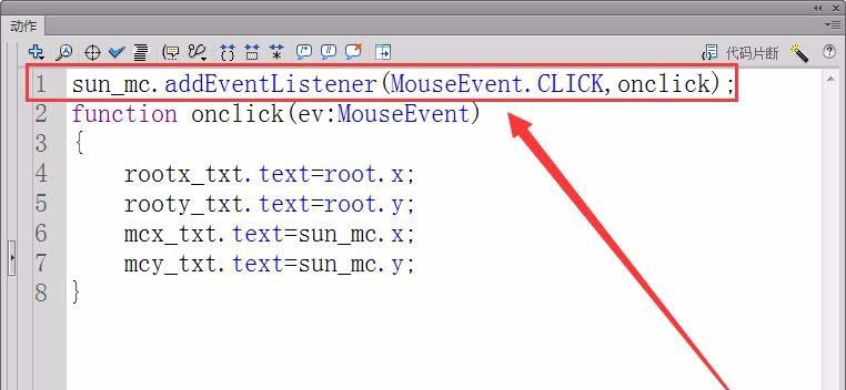 6、首先,注冊對象sun_mc的鼠標單擊事件的偵聽器,接收者函數為onclick。