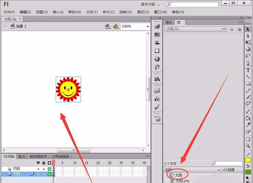 1、雙擊打開一個已有的Flash作品,本例為“太陽”。