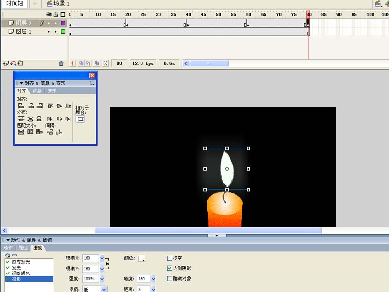 以上就是flash中給蠟燭添加燭光搖曳效果的教程,希望大家喜歡,請繼續關注武林網。