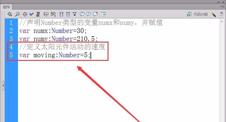 6、接著,定義“太陽”元件的運行速度,代碼如下圖所示。