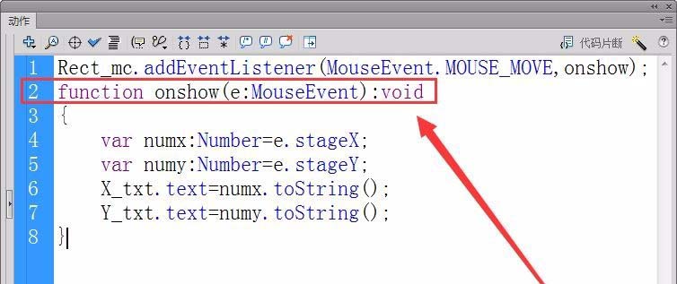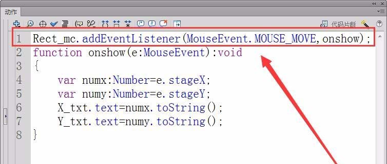 9、首先,注冊實例Rect_mc的鼠標(biāo)移動事件的偵聽器,接收者函數(shù)為onshow。