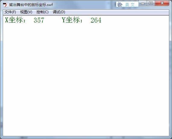 14、運行程序,可以看到當(dāng)我們的鼠標(biāo)在舞臺上移動時,舞臺的左上方即顯示鼠標(biāo)的實時坐標(biāo)。