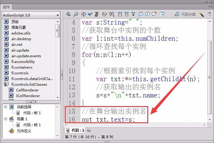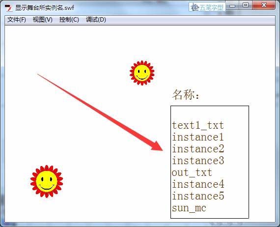 10、最后,在舞臺輸出所包含的所有實例的名稱。