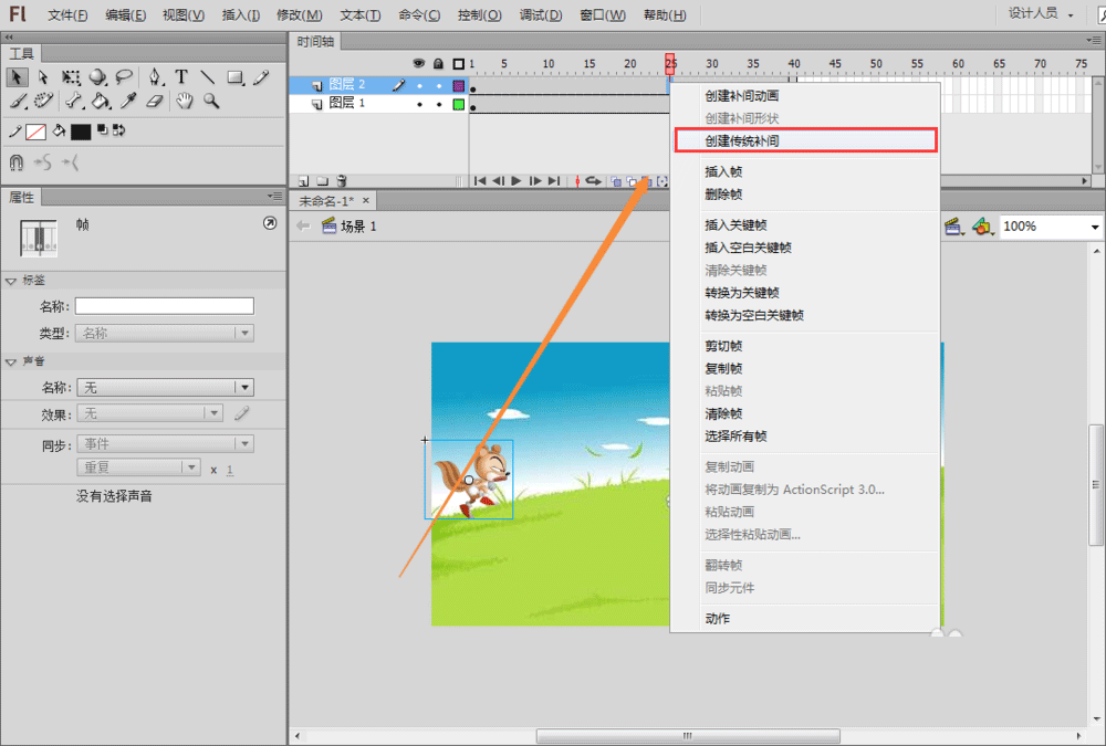 flash的動畫形式主要分為補間動畫、遮罩動畫、引導動畫和逐幀動畫四種,掌握這些你就可以游刃有余的制作想象動畫。而傳統(tǒng)補間動畫在起始幀和結(jié)束幀兩個關鍵幀中定義,兩個關鍵幀中的內(nèi)容必須是同一個,可以對元件進行變形等操作。接下來小編教大家使用flash怎么制作傳統(tǒng)補間動畫?以小松鼠奔跑為例。