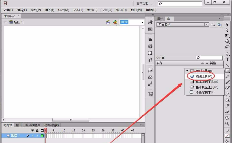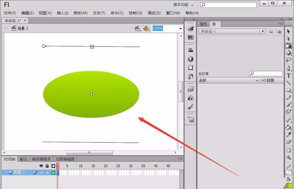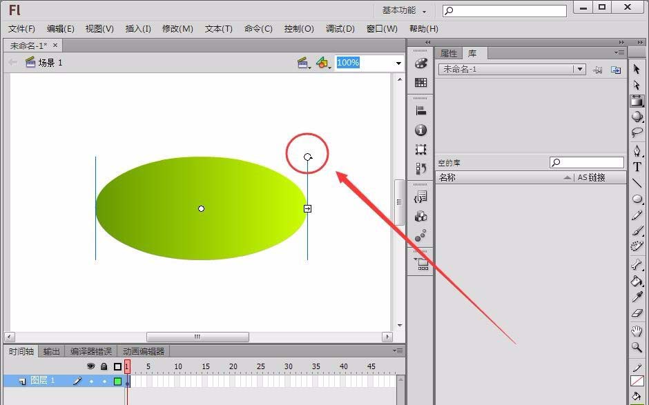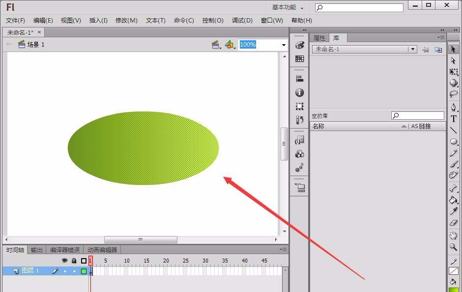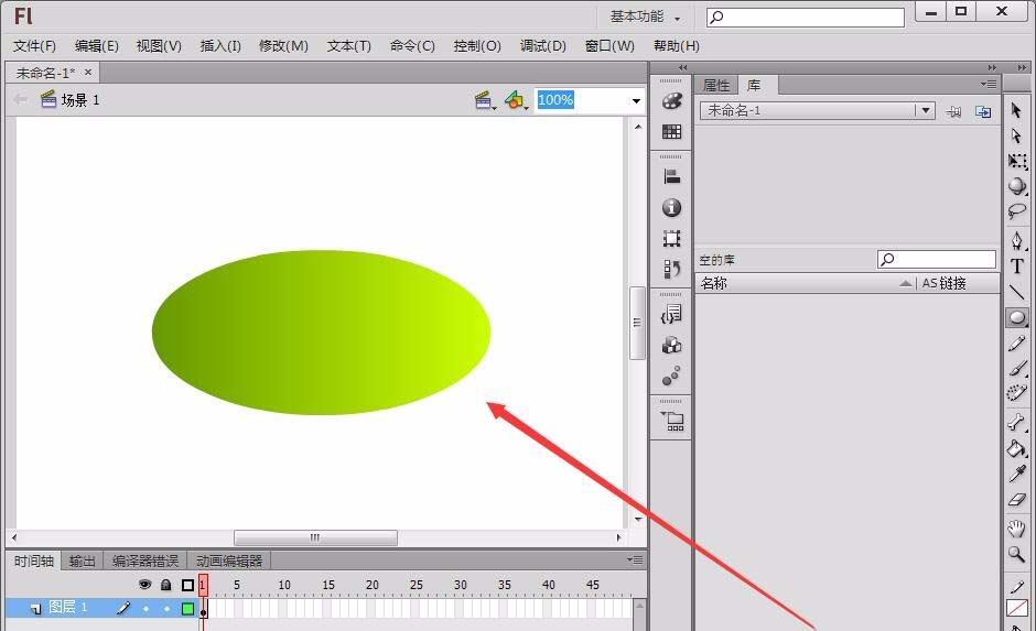 5、在舞臺(tái)繪制一個(gè)漸變色橢圓。