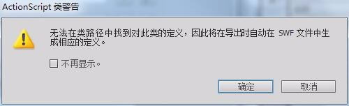 9、在出現的“ActiontScript類警告”窗口中,單擊“確定”。