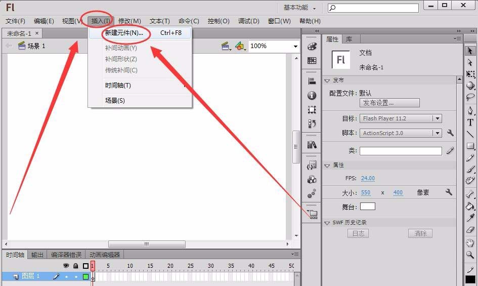 1、打開Flash軟件,選擇“ActionScript3.0”選項,新建一個空白文檔。