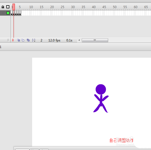 1、首先在舞臺上的第一幀處畫一個小人,怎樣畫隨便,我的畫的...咳咳。就不說了