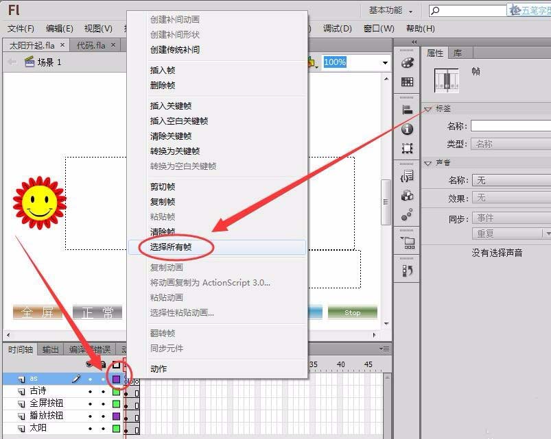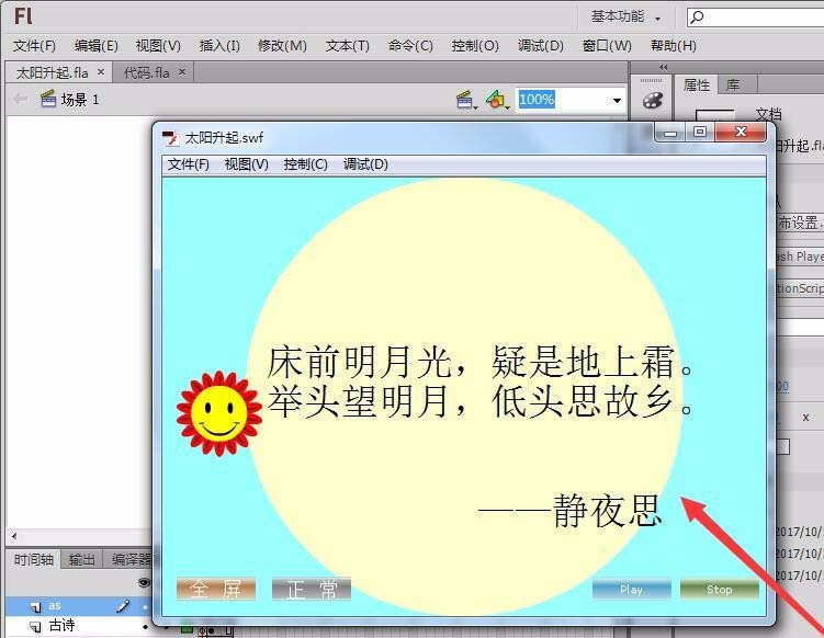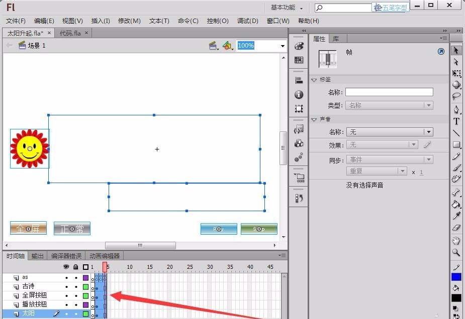 1、打開一個(gè)已有的Flash文檔,本例為“太陽升起”。
