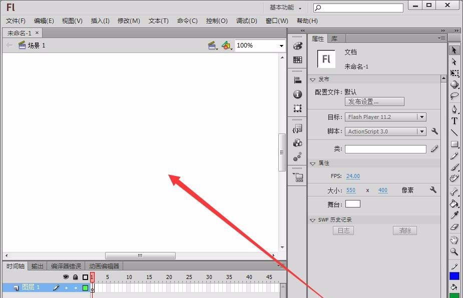 1、打開Flash軟件,選擇“ActionScript3.0”,新建一個空白文檔。