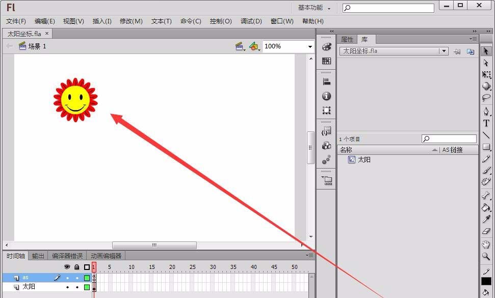 1、打開Flash軟件,選擇“ActionScript3.0”,新建一個(gè)“太陽坐標(biāo)”的作品。