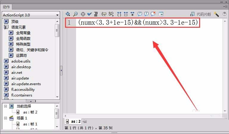10、Flash中,對(duì)于浮點(diǎn)數(shù),不能用“==”判斷兩個(gè)數(shù)是否相等,如果是循環(huán),要用大于、小于。如果一定要判斷浮點(diǎn)數(shù)相等的話,要求兩數(shù)之間差別很小,而不是相等,應(yīng)寫成如下形式。