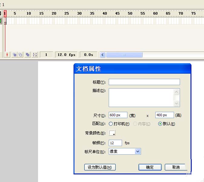 1、首先啟動(dòng)flash8,新建一文檔,設(shè)置大小為600*400,背景顏色為白色,幀頻為12fps。