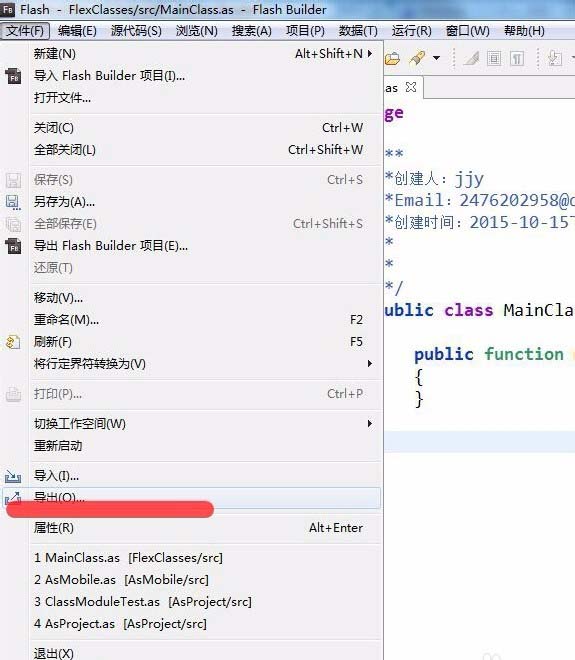 1、選擇“ 文件”-“ 導(dǎo)出 Flash Builder 項(xiàng)目”。