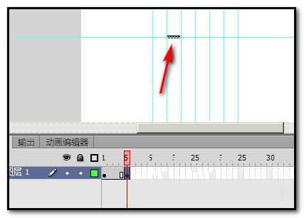 4、在第5幀插入關鍵幀;并把舞臺上的線段移到右邊。如圖中所示的位置。