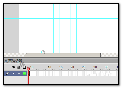 5、在第10幀插入關鍵幀;并把舞臺上的線段移到右邊。如圖中所示的位置。