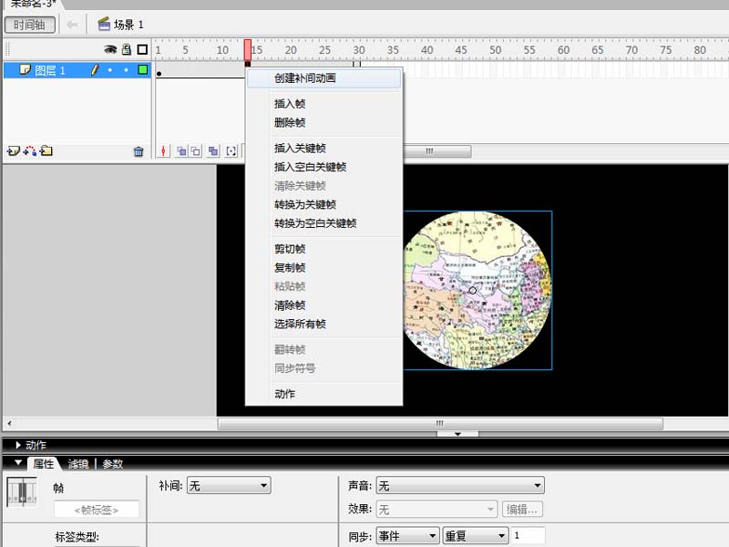4、在30幀處插入關鍵幀,在1-30幀之間右鍵單擊選擇創建傳統補間動畫。