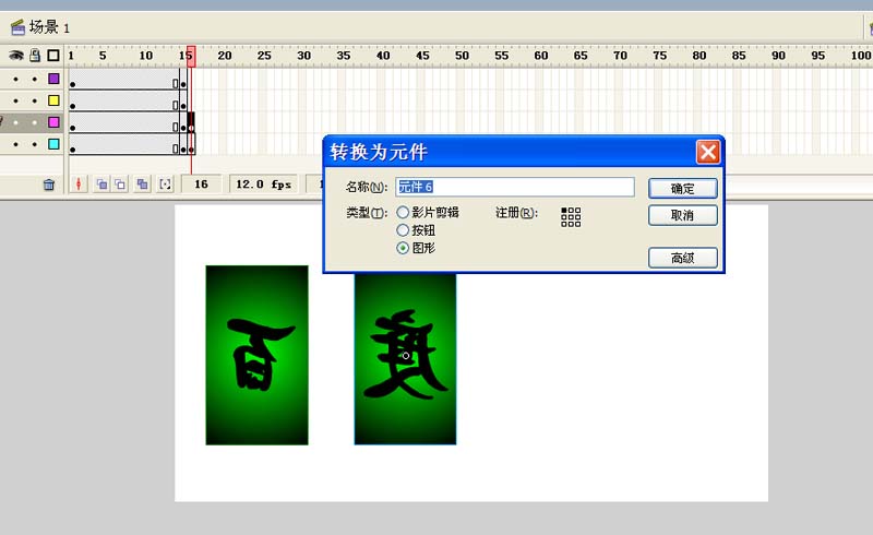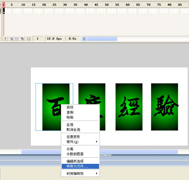 4、分別右鍵單擊長方形從下拉菜單中選擇轉(zhuǎn)換為元件選項(xiàng),將它們轉(zhuǎn)換為圖形元件。