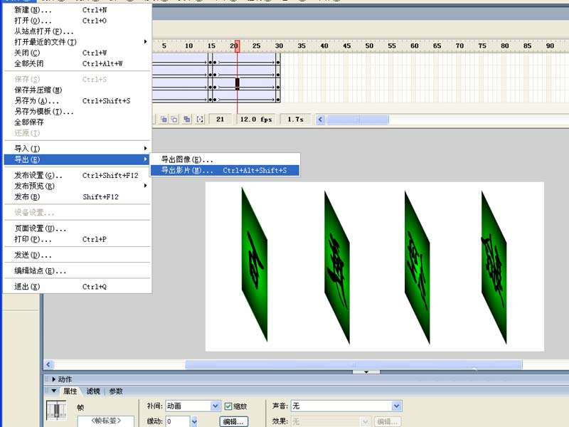 9、執(zhí)行文件-導(dǎo)出-導(dǎo)出影片命令,將文件導(dǎo)出為gif格式,保存在一個(gè)合適的位置上即可。