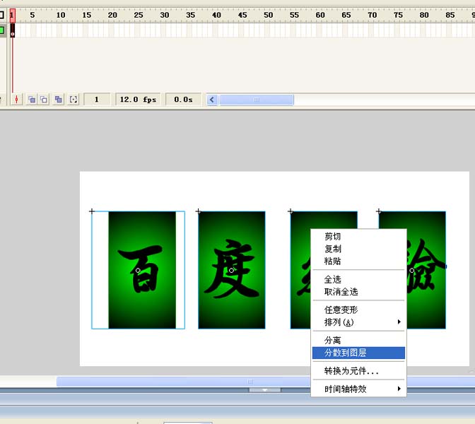 5、執(zhí)行ctrl+a組合鍵進(jìn)行全選,右鍵單擊從下拉菜單中選擇分散到圖層選項(xiàng)。