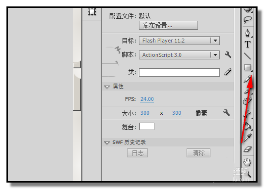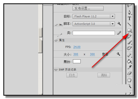 2、FLASH CS6 的工具欄在界面的右側(cè)這里,我們在工具欄中找到:矩形工具