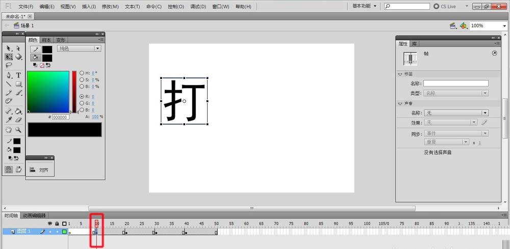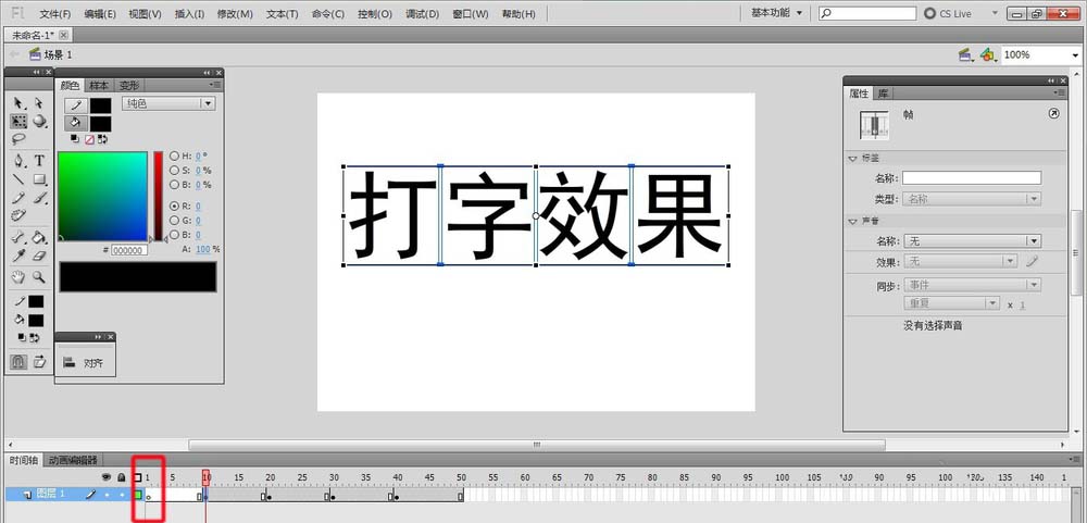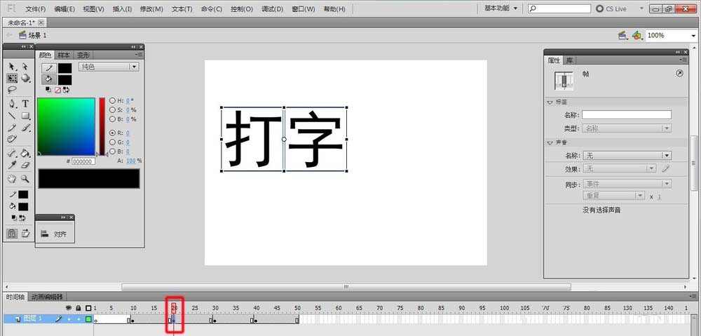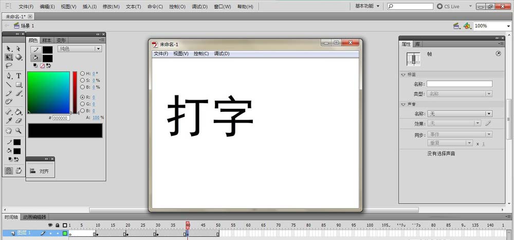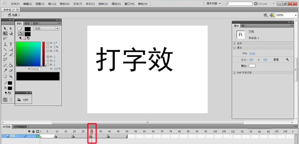 6、在第30幀處選擇文字,去掉最后1個文字,最后按下Ctrl+Enter組合鍵查看效果。