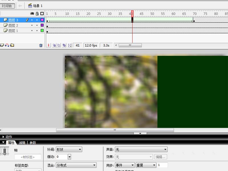 7、在圖層3的70幀處插入關(guān)鍵幀,修改屬性面板中x的值為600,接著選擇1-70中的任意一幀,修改屬性面板中的補(bǔ)間為形狀。