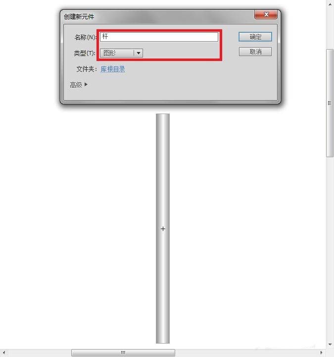 3、新建一個名為“桿”的圖形元件,并繪制桿。