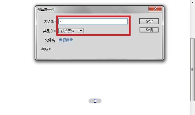 9、新建一個名為“2”的影片元件,將“按鈕”圖形元件拖入,并插入文本“2”。